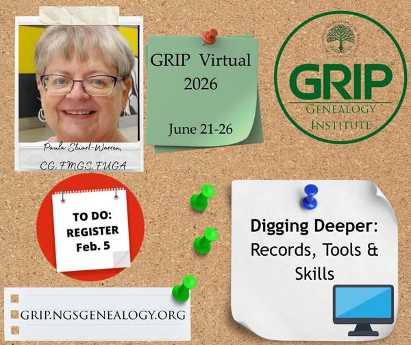 Ready for a week of learning, networking, analysis, and insight to a variety of records to further your genealogy research. Would you like an opportunity to receive help on one of your own genealogy dilemmas? Join us in this virtual course for a week of learning in 19th through 21st century U.S. records, online resources, “hidden” records, analysis, and methodology. Full session details https://grip.ngsgenealogy.org/…/digging-deeper-records…/